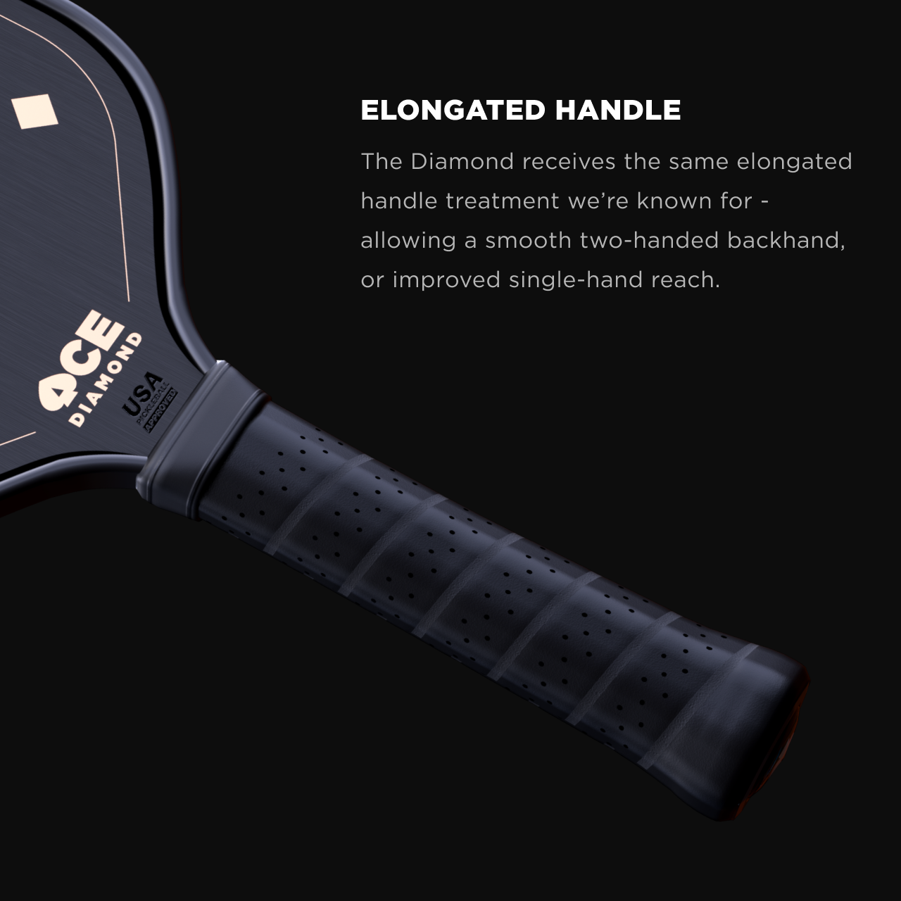 The ACE Diamond is a USAP approved paddle and optimal choice for intermediate to advanced players looking for extra power on their shots without sacrificing hand speed do to the additional weight of many power paddles. The Diamond's aramid core delivers all of the power with none of the extra weight and is the paddle of choice by Gabe Joseph who is ranked top 10 in the world.