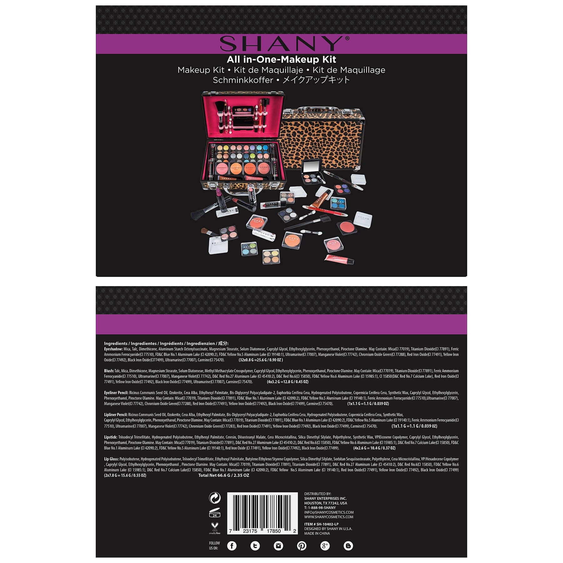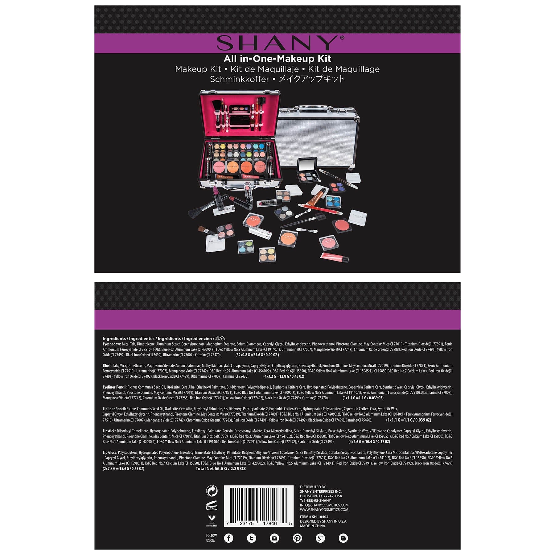 The SHANY Carry All Makeup Train Case is a durable and portable aluminum makeup train case that comes with a variety of stylish / high quality makeup that best fits your on-the-go lifestyle. This case comes with: eight shadow quads in shimmer and matte shades, three dual sided eyeshadow sponges, two blushes, one blush brush, one portable blush brush, four full sized lipsticks (two matte and two shimmer), one dual-sided lip liner (red and pink), one dual-sided eye liner (black and brown), one dual-sided eyebrow brush/comb. You can take a blush or eye shadow quad in your purse with our miniature mirror compact. This is a great gift for birthdays, holidays, graduations, or any reason to make a beauty smile. Made of minimal ingredients which are Non-toxic, Non-irritating, Sulfate Free and EU Allergen free. All cosmetics are gentle on sensitive and dry skins and made with high quality and premium ingredients. Easily washes off with water. SHANY Makeup sets are great for teen makeup, beginner makeup and theatrical makeup applications. For more flexibility and ease of application, use this kit with one of the many SHANY professional affordable brush sets.
