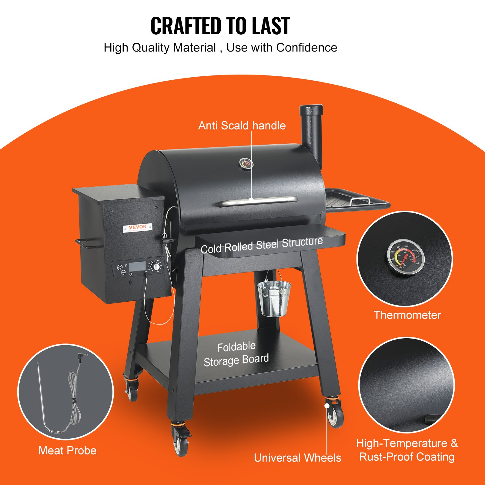 Surface Technology: Powder Coat Finish,Item Size: 52.8 x 32.1 x 51.7 in / 1340 x 815 x 1312 mm,Item Model Number: 07900003,Temperature Range: 175~500 °F,Cylinder Capacity: 15.8L,Material: A3 + Enamel,Cooking Area: 740 in²,Item Weight: 156 lbs / 70.9 kg