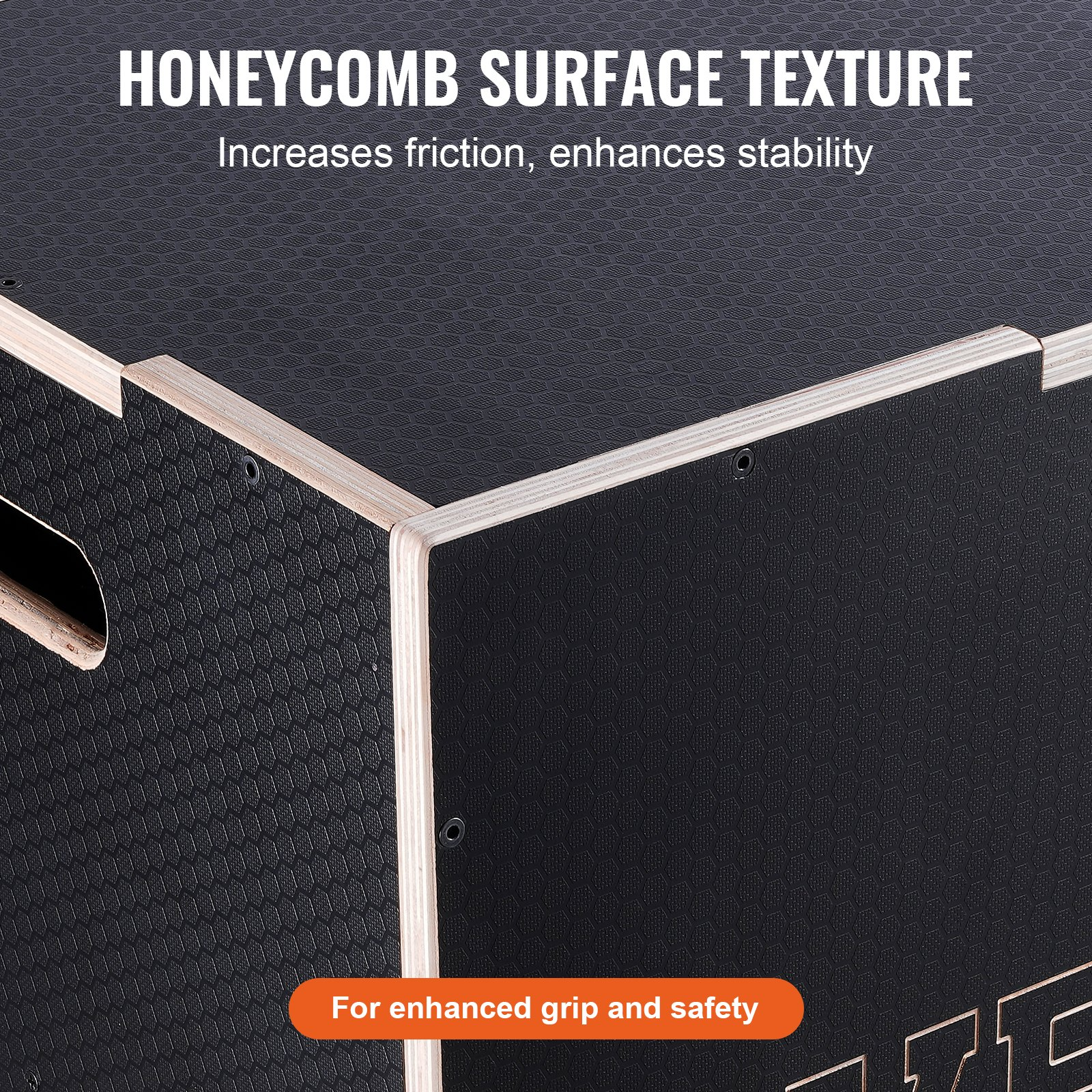 PRODUCT DESCRIPTION VEVOR 3 in 1 Plyometric Jump Box, 30/24/20 Inch Wooden Plyo Box, Platform & Jumping Agility Box, Anti-Slip Fitness Exercise Step Up Box for Home Gym Training, Conditioning Strength Training, Black
