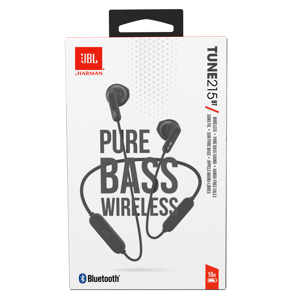 Pure Bass Wireless. Introducing JBL TUNE 215BT wireless earbud headphones with JBL Pure Bass Sound. Thanks to the 16-hour battery life they can wirelessly stream high-quality JBL Pure Bass sound and provide hands-free call management. Inside the premium housing is a pair of 12.5mm drivers that will
