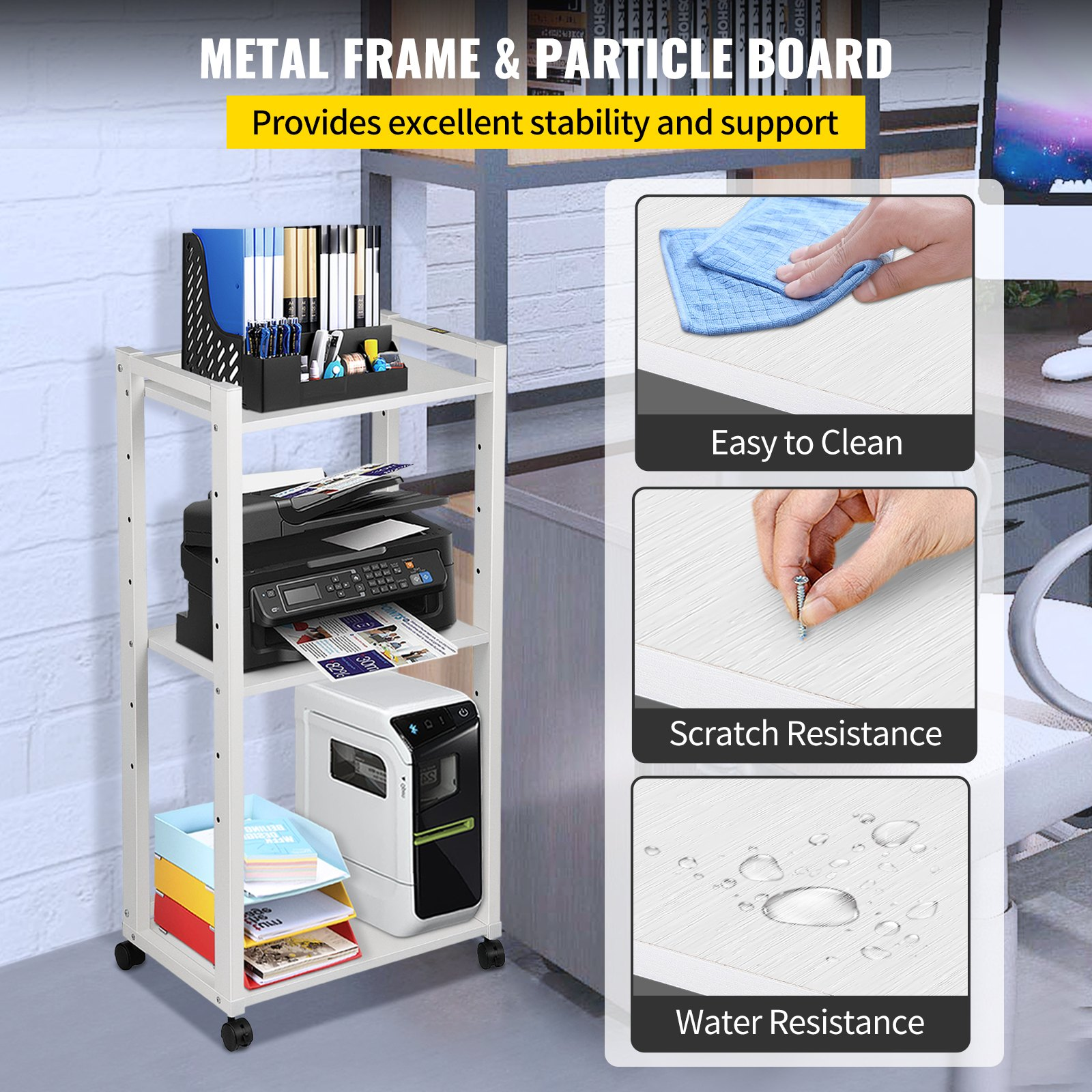 VEVOR Printer Stand, 3-Tier Rolling Printer Cart, Adjustable Storage Shelf Rack on Lockable Wheels, 19.69x 13.78x 42 inch Printer Table for Home Office Small Spaces Organization, White