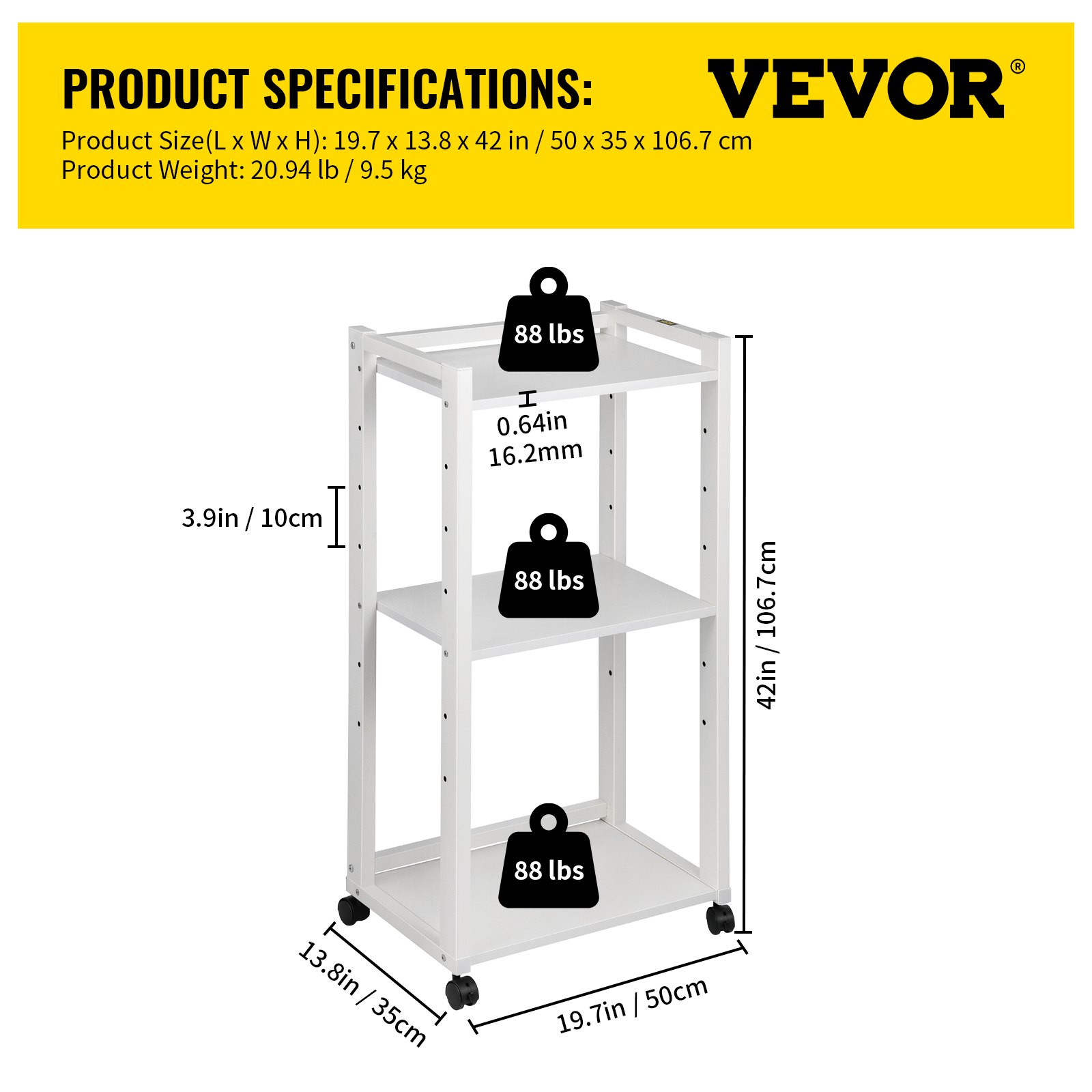 (FINAL PRICES ARE LOWER ON OUR SITE!) VEVOR Printer Stand, 3-Tier Rolling Printer Cart, Adjustable Storage Shelf Rack on Lockable Wheels, 19.69x 13.78x 42 inch Printer Table for Home Office Small Spaces Organization, White