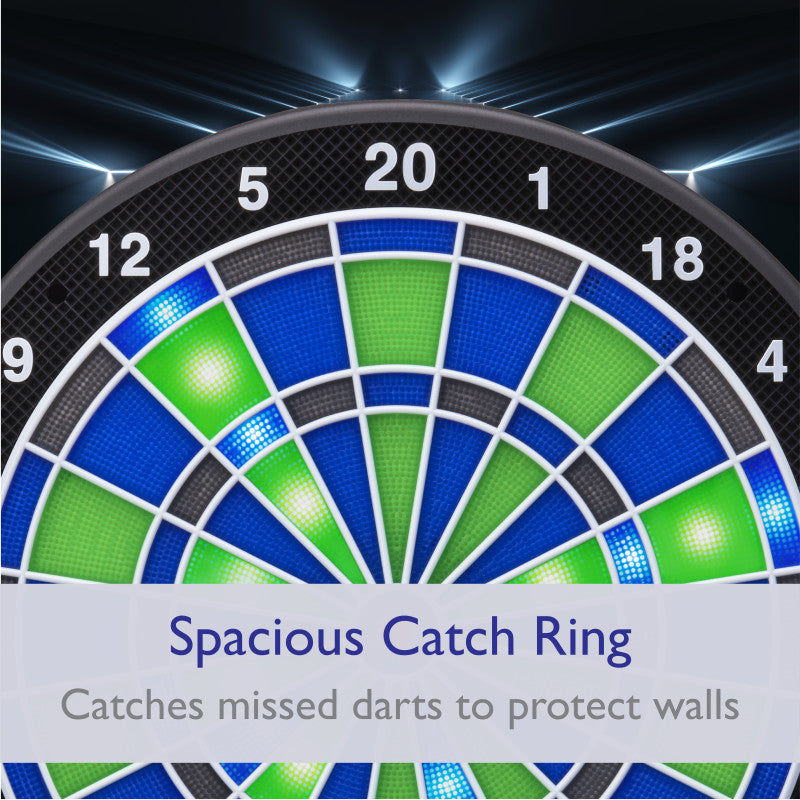 • Top Quality Segments - Regulation-sized 15.5” electronic dart board target area is incredibly durable with precision engineered concave segment holes that lock in your shots