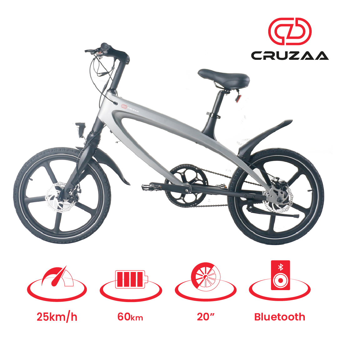 Move your own way and let the Cruzaa electric Bike do all the hard work for you. 100% electric with a unique aluminium lightweight frame design, the Cruzaa makes everyday transport an effortless pleasure.
