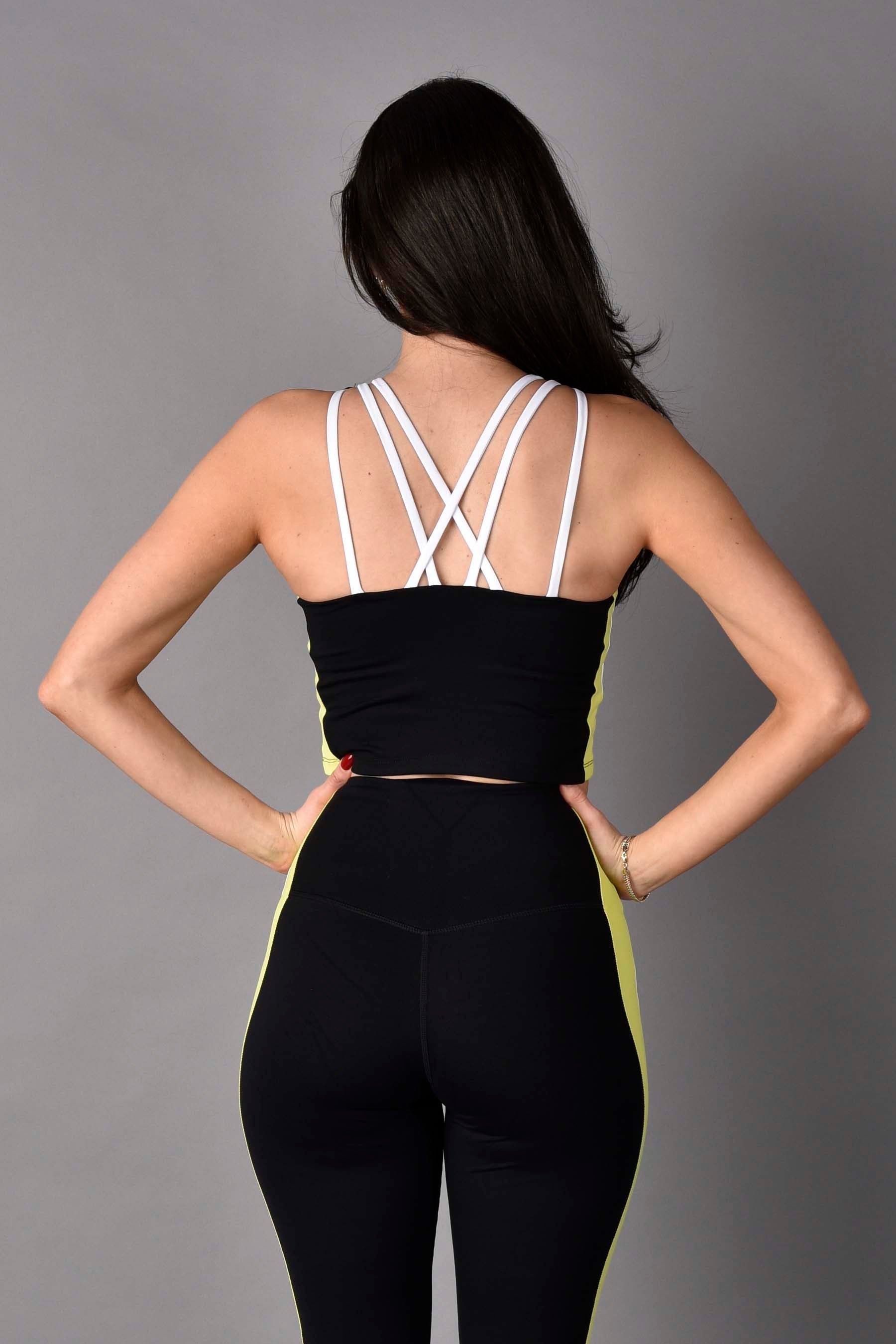 Kyra Matte Luxe High Neck Tank Sports Bra in Black Neon Combo by Wear Love More