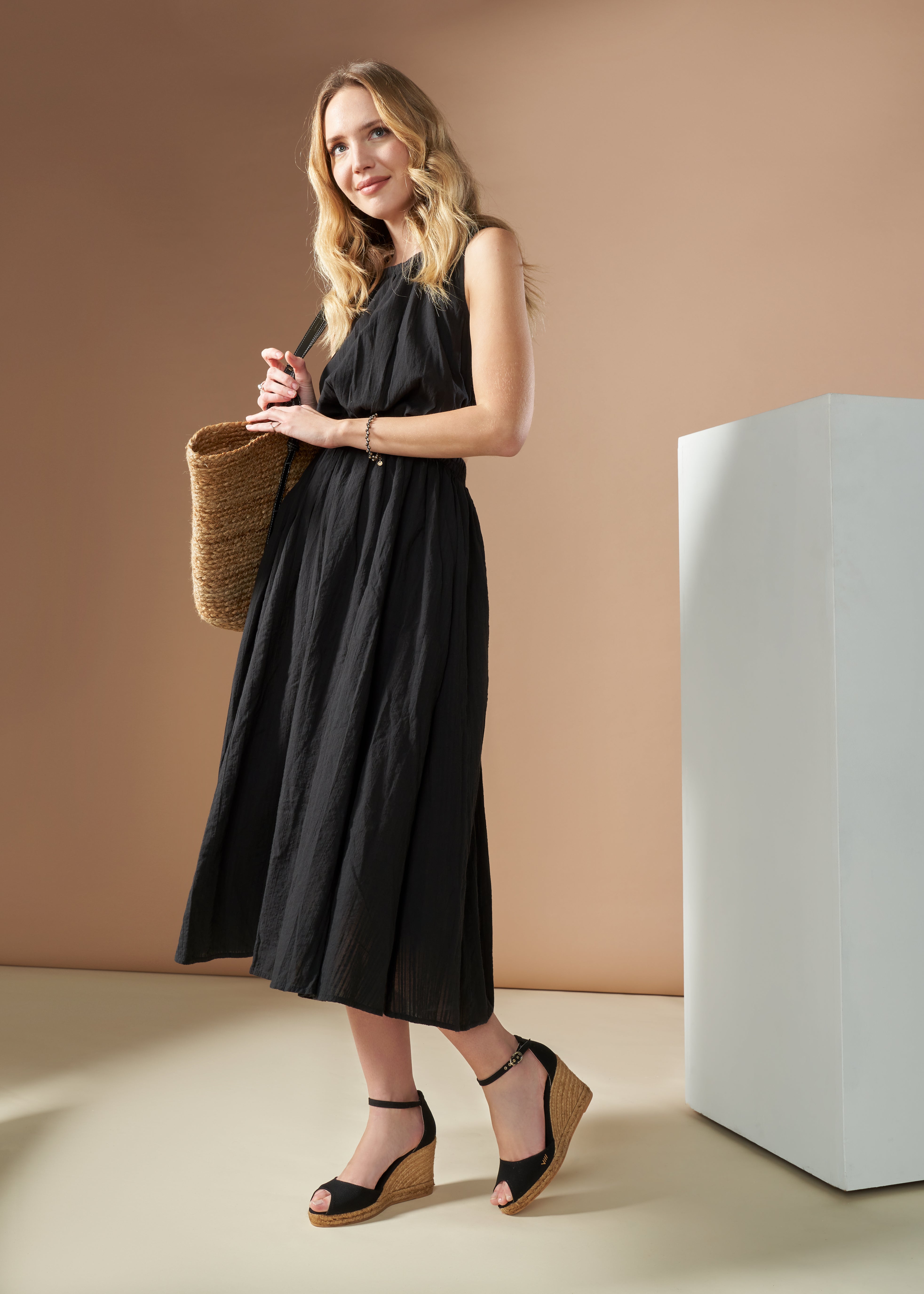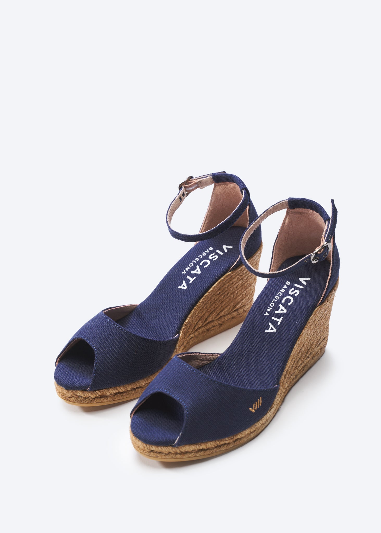Sleek and stylish, these Aiguafreda canvas espadrilles will make you the star of the show, wherever you are. Sitting on top of a 3.5“ high wedge, these ankle strap espadrilles feature an open cross toe and are made of 100% breathable cotton canvas, which makes these very comfortable espadrilles indeed. And each pair is hand made in Spain by skilled artisans using traditional methods.