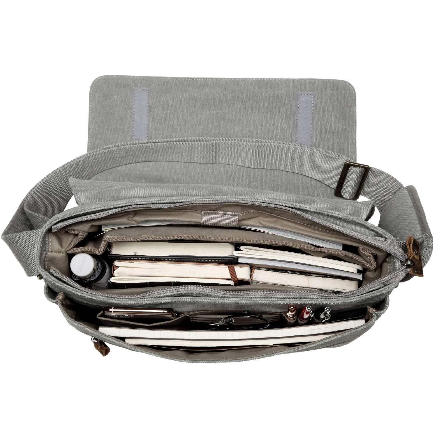 • Adjustable canvas shoulder strap with stylish and functional, brass plated buckles;