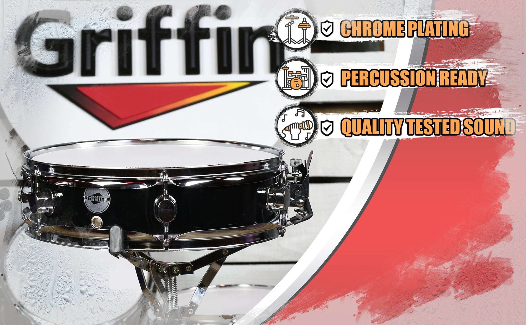 Piccolo Snare Drum 13" x 3.5" - 100% Poplar Wood Shell with Black PVC & White Coated Drum Head - Drummers Acoustic Marching Kit Percussion