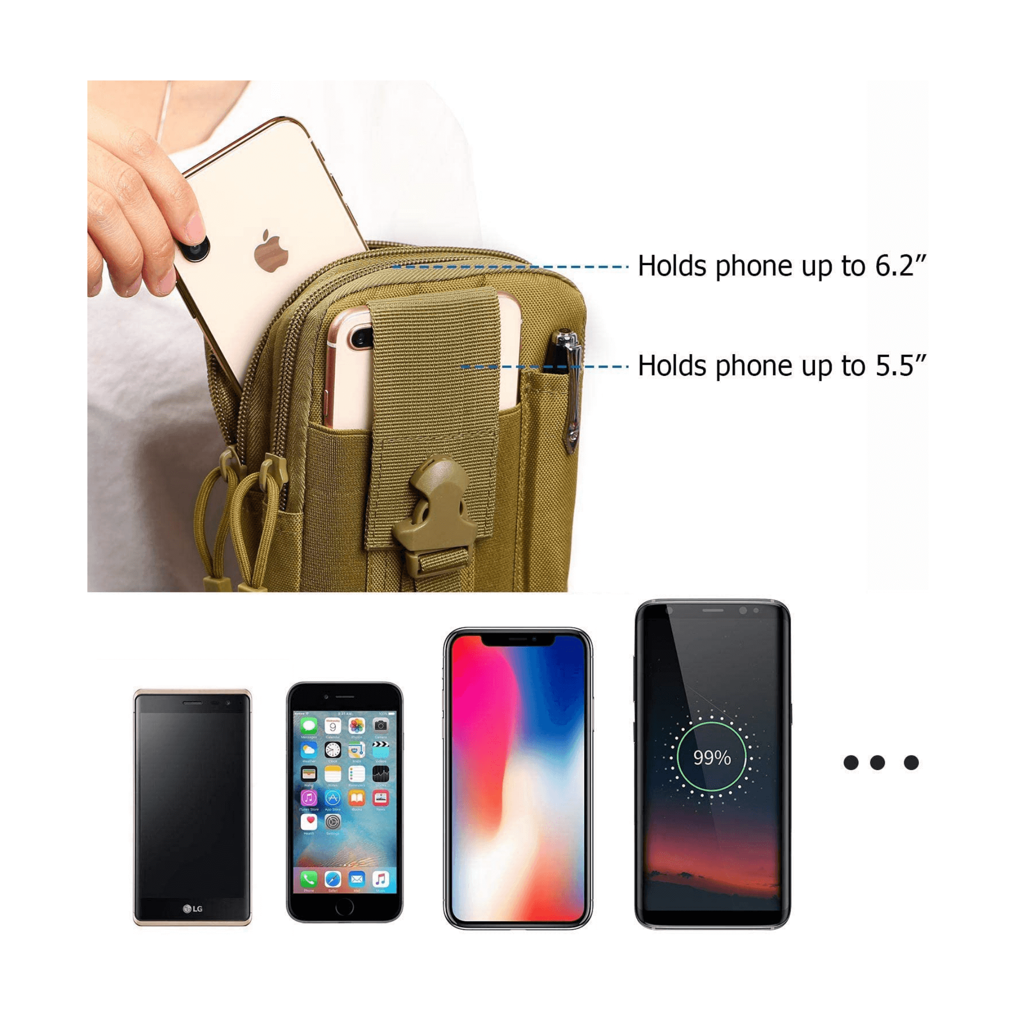 - MULTI-USE STORAGE: This MOLLE military waist bag is ideal whether you need to carry your meds with you in a secure place, or whether you want a place to keep your cell phone and power bank safe from the elements. Keys, wallets, glasses, contact lens containers, medical masks, and jewelry are just a few of the other items that this multiple-pocketed bag can hold while you’re busy living your best life.