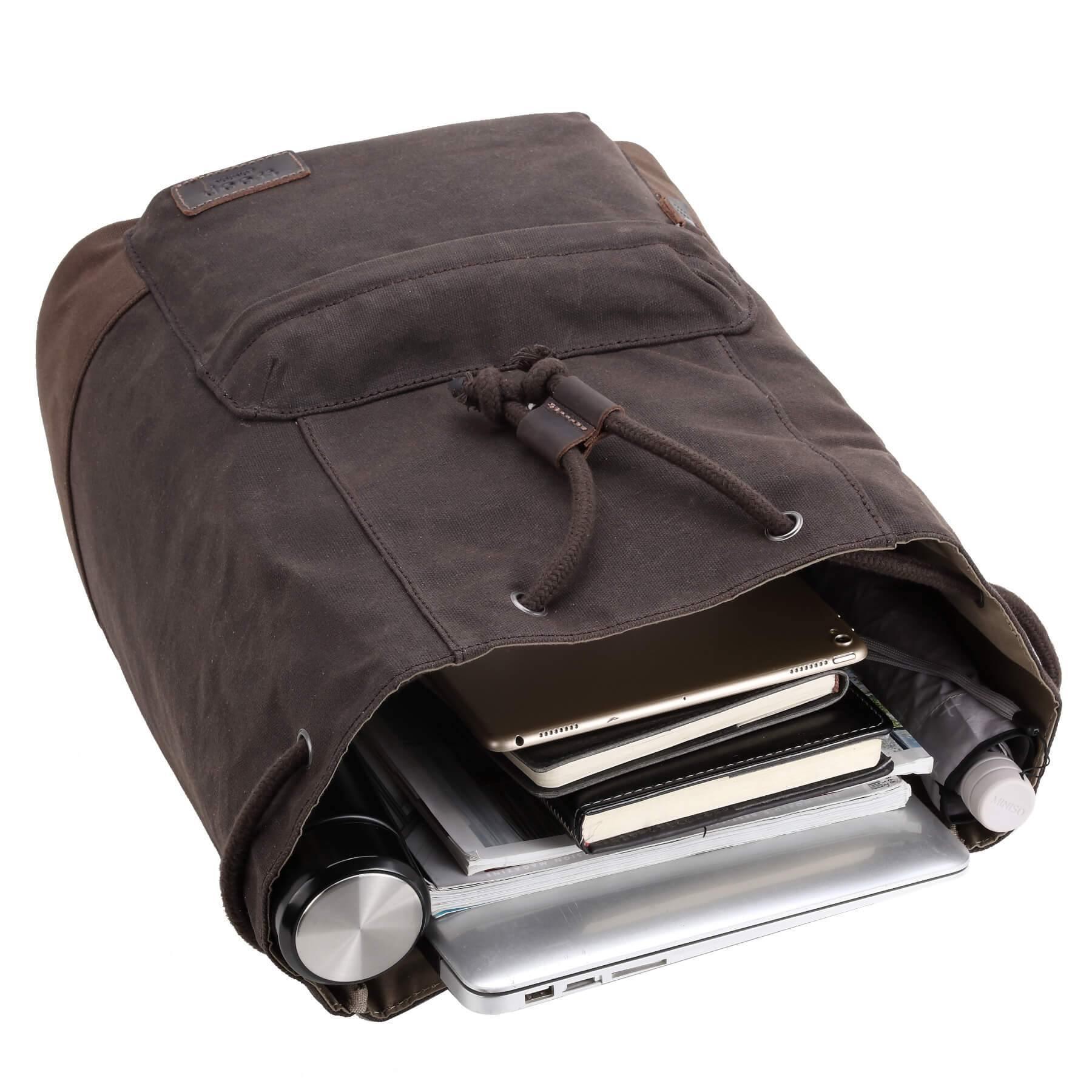 - Outer Material: Super strong waxed cotton canvas; Genuine leather trimmings and detailed zip pullers; Vintage metals.