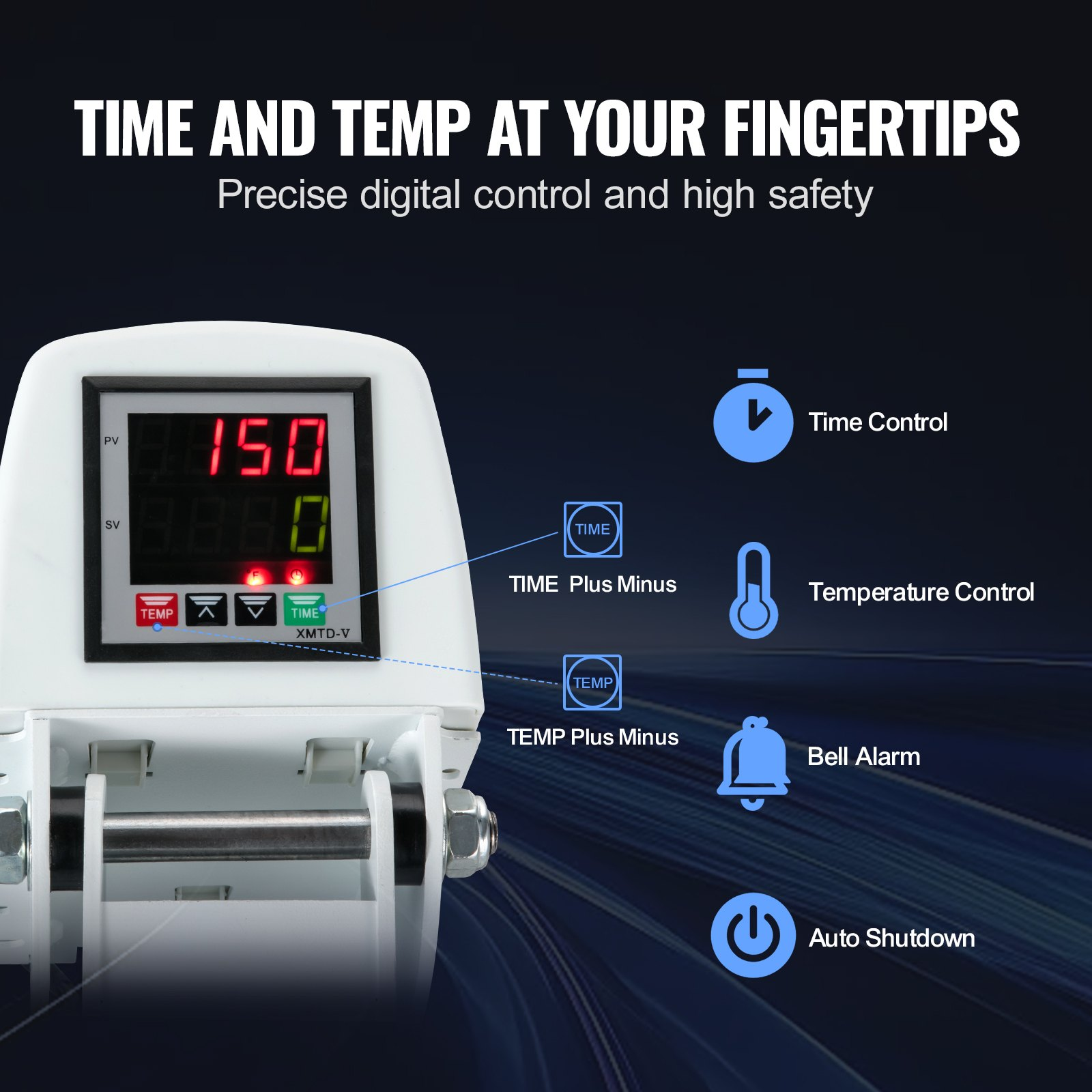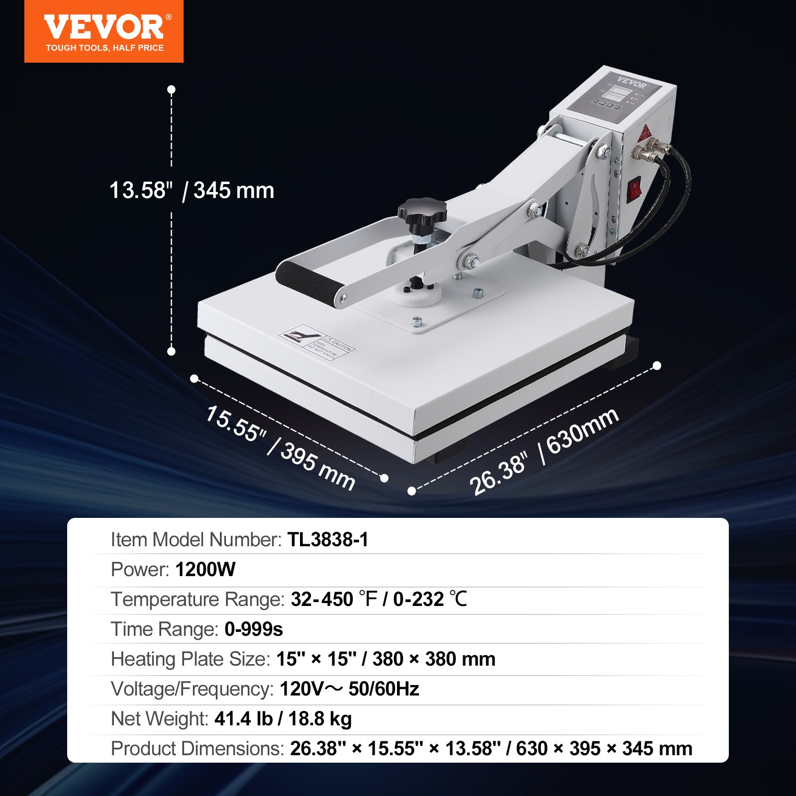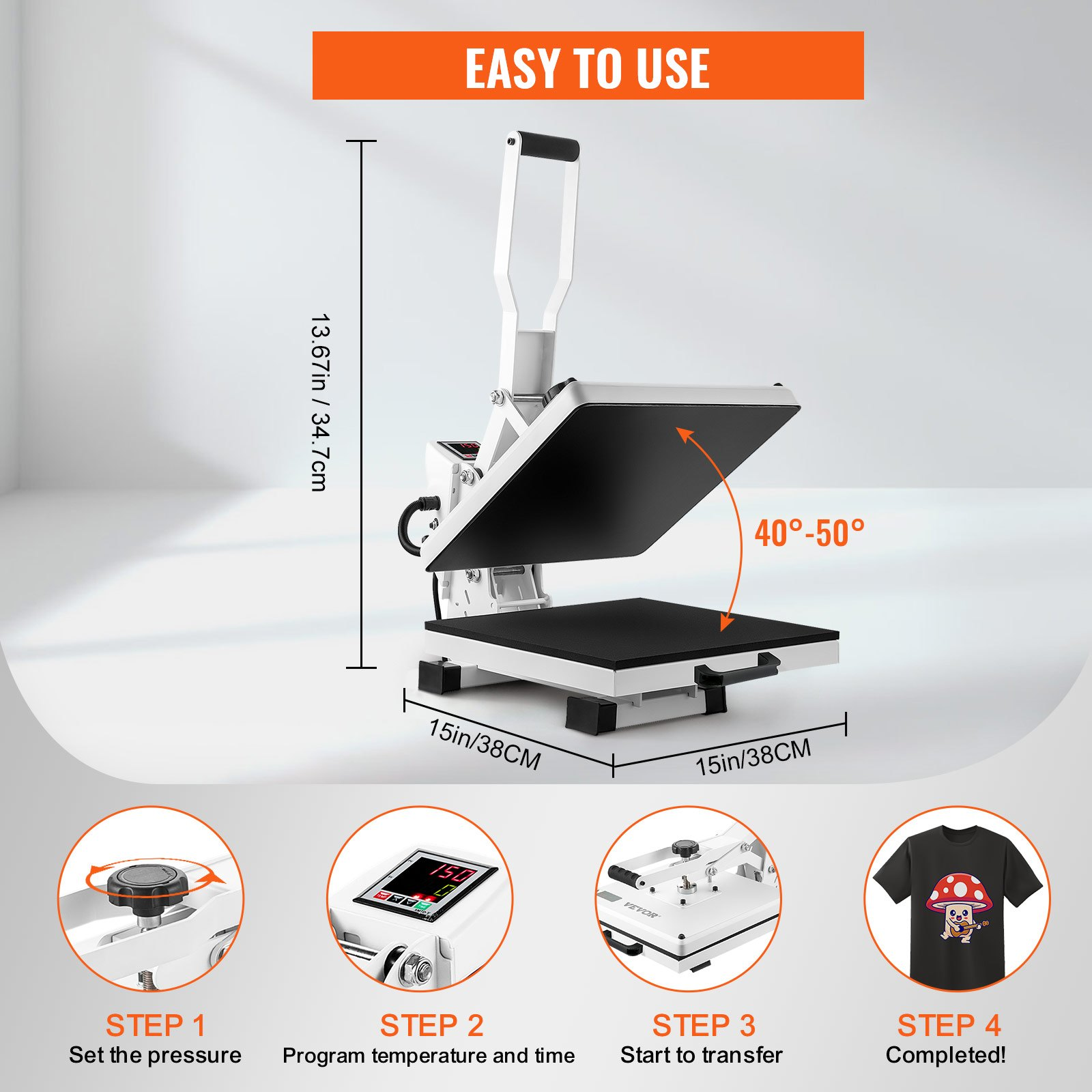 VEVOR Heat Press, Heat Press Machine for T-Shirt, Fast Heating, Power Digital Industrial Sublimation Printer for Heat Transfer Vinyl, High Pressure Heat Press 15x15, Easy to Use, White