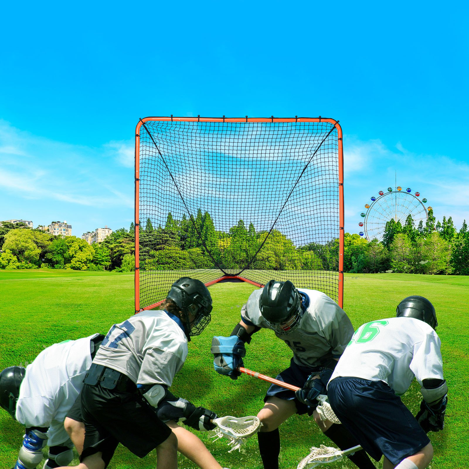 VEVOR Lacrosse Goal, 6' x 6' Lacrosse Net, Folding Portable Backyard Lacrosse Training Equipment, Steel Frame Training Net, Quick & Easy Setup Lacrosse Goal, Perfect for Youth Adult Training, Orange