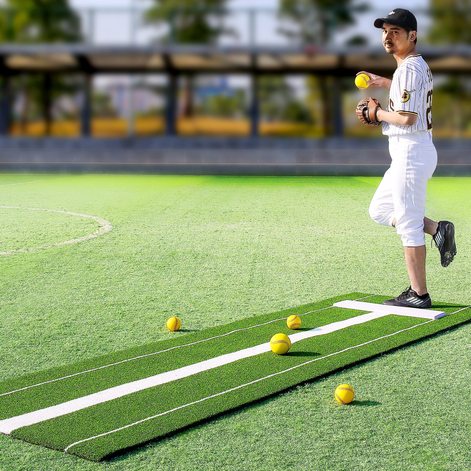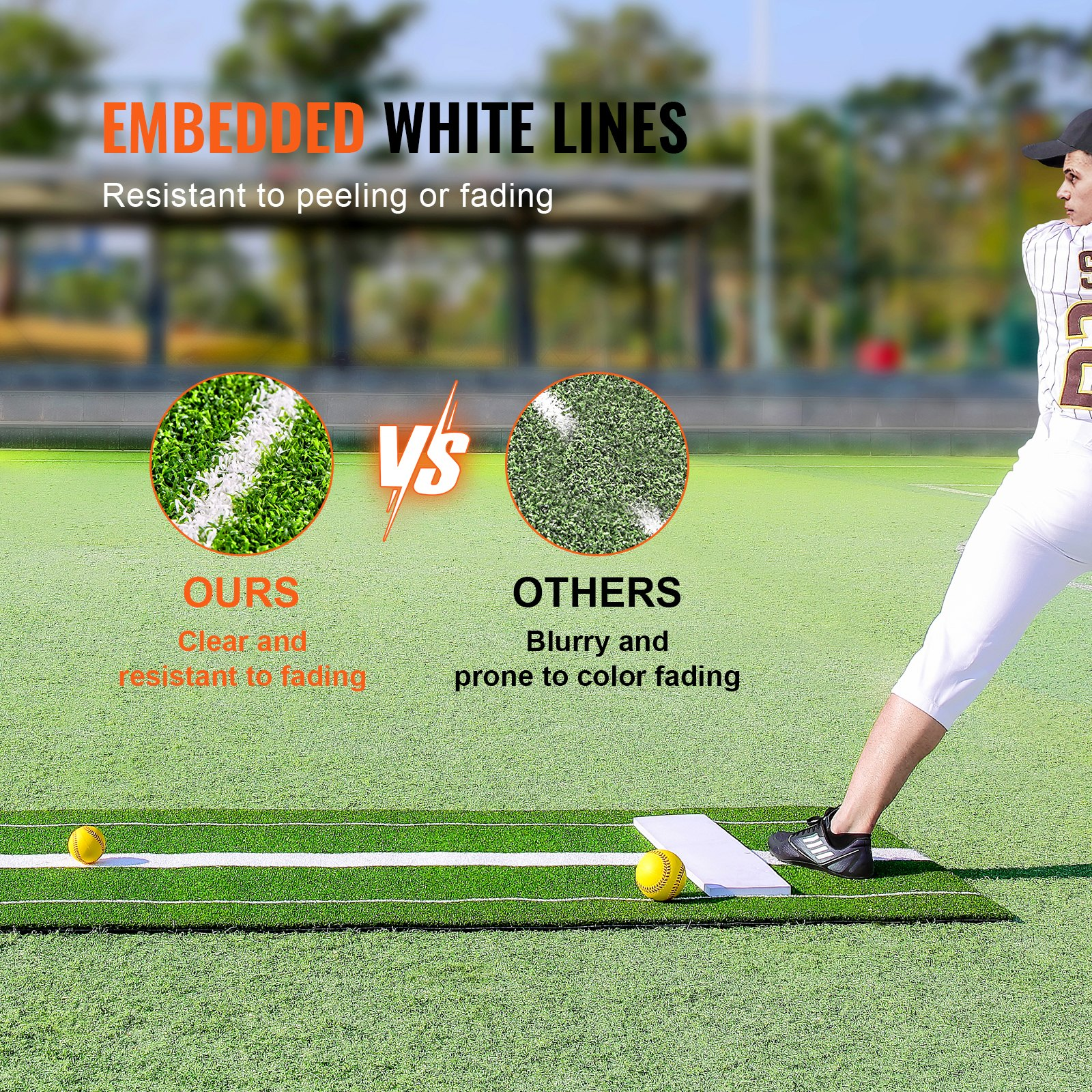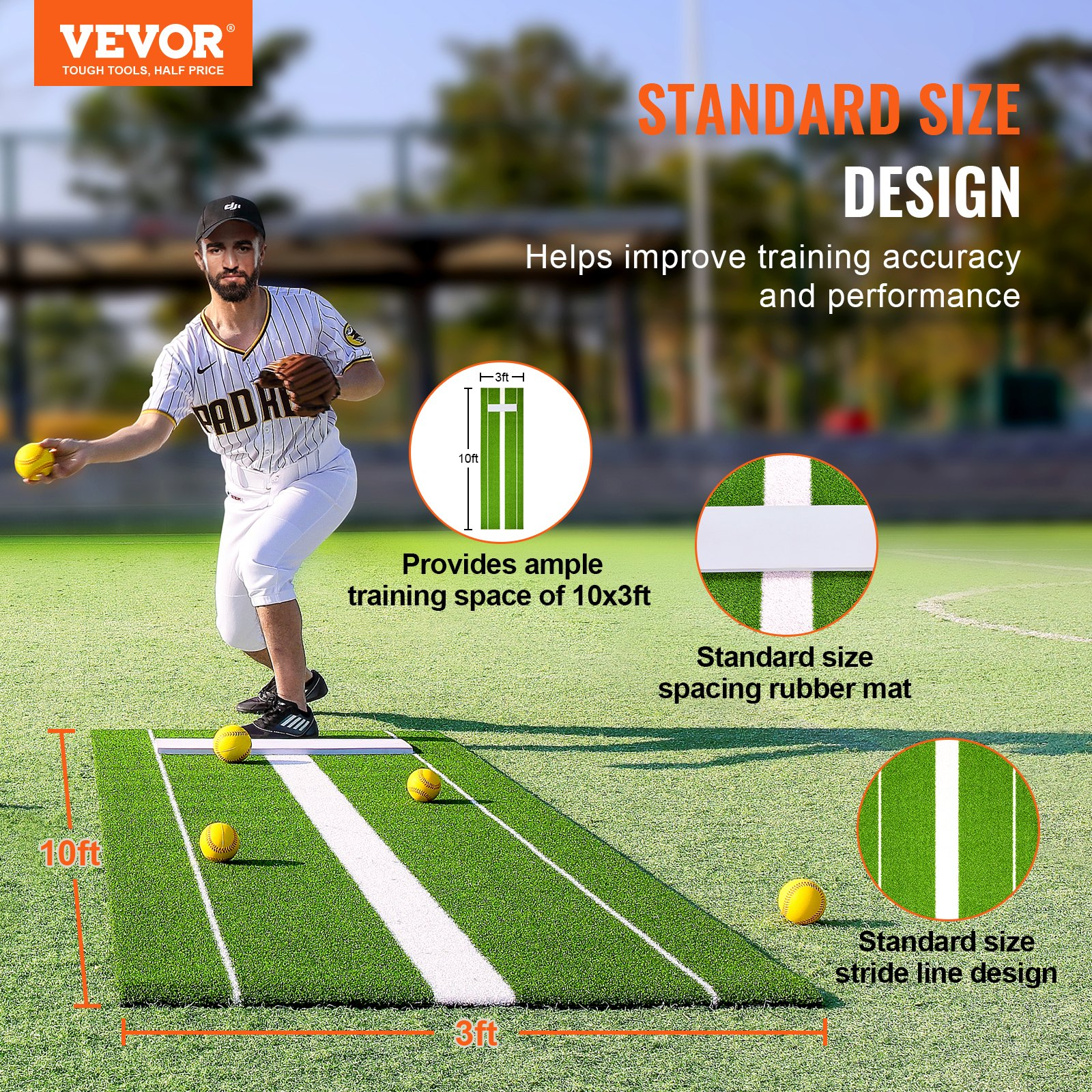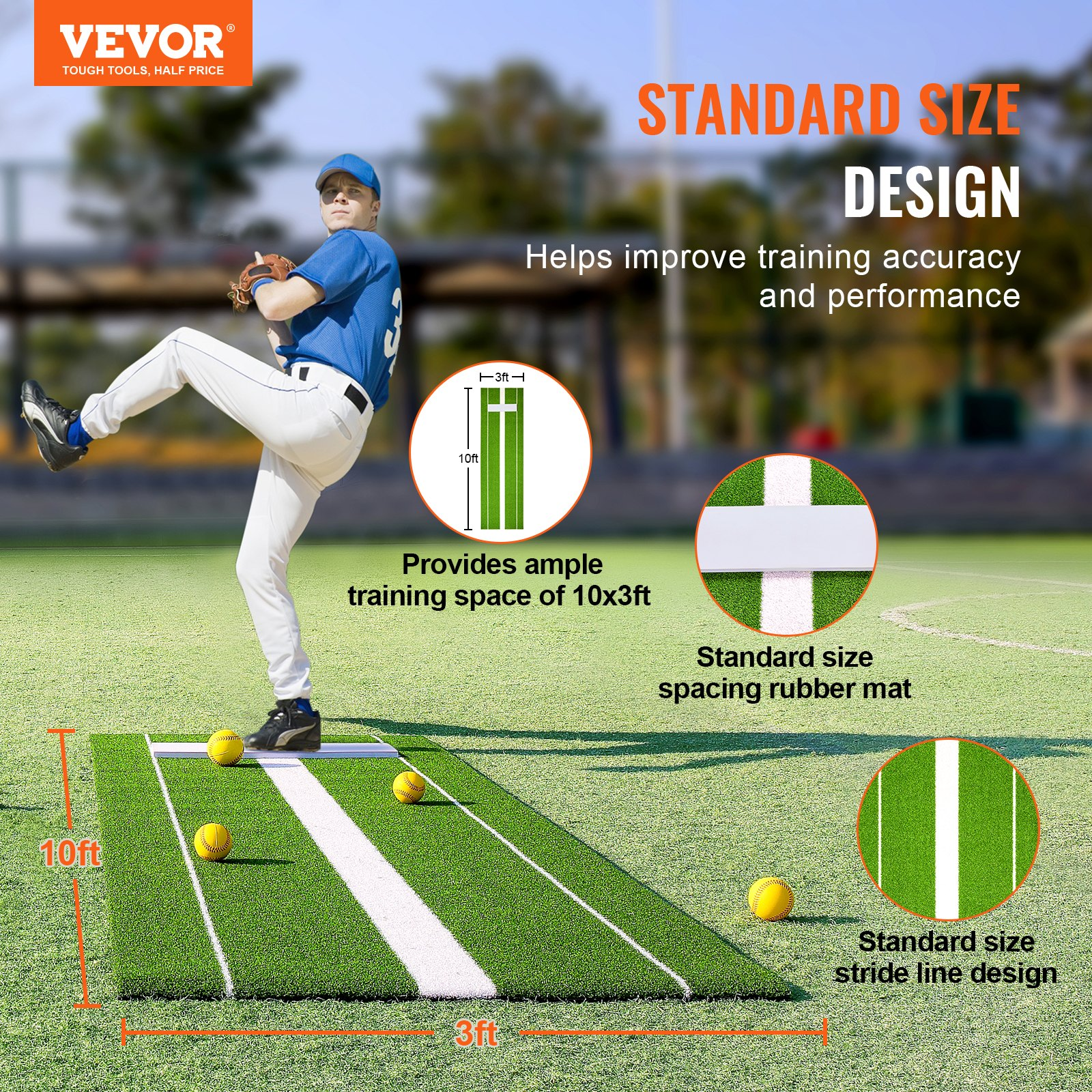 VEVOR Softball Pitching Mat, 10' x 3' Softball Pitching Mound, Antislip Antifade Rubber Softball Pitching Training Aid, Pitch Practice Mat for Pitchers Indoor Outdoor Pitching Practice, Green