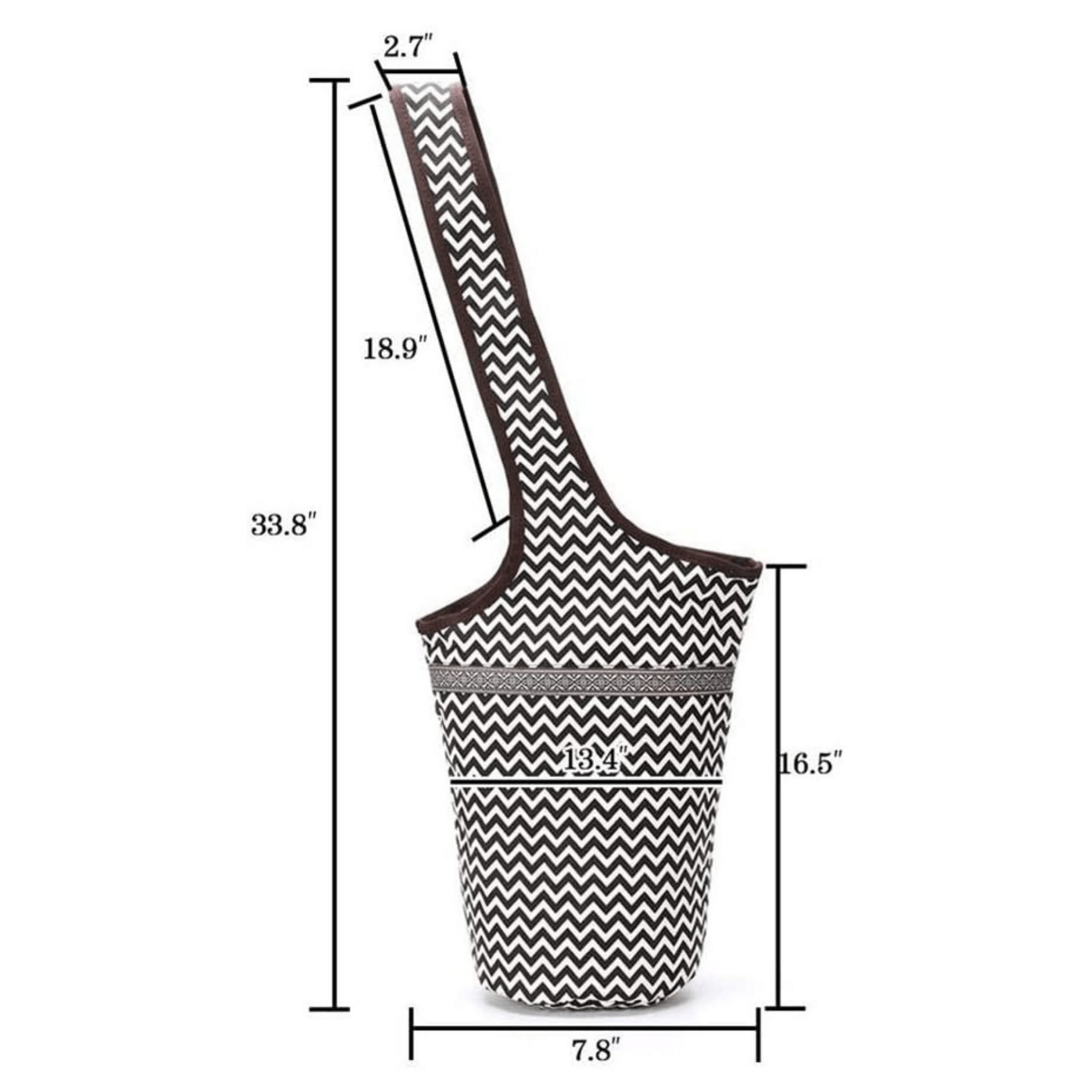 • Yoga Mat Bag Size: 34" length including shoulder strap, 13.6" width on the top, and 12" width on the bottom.